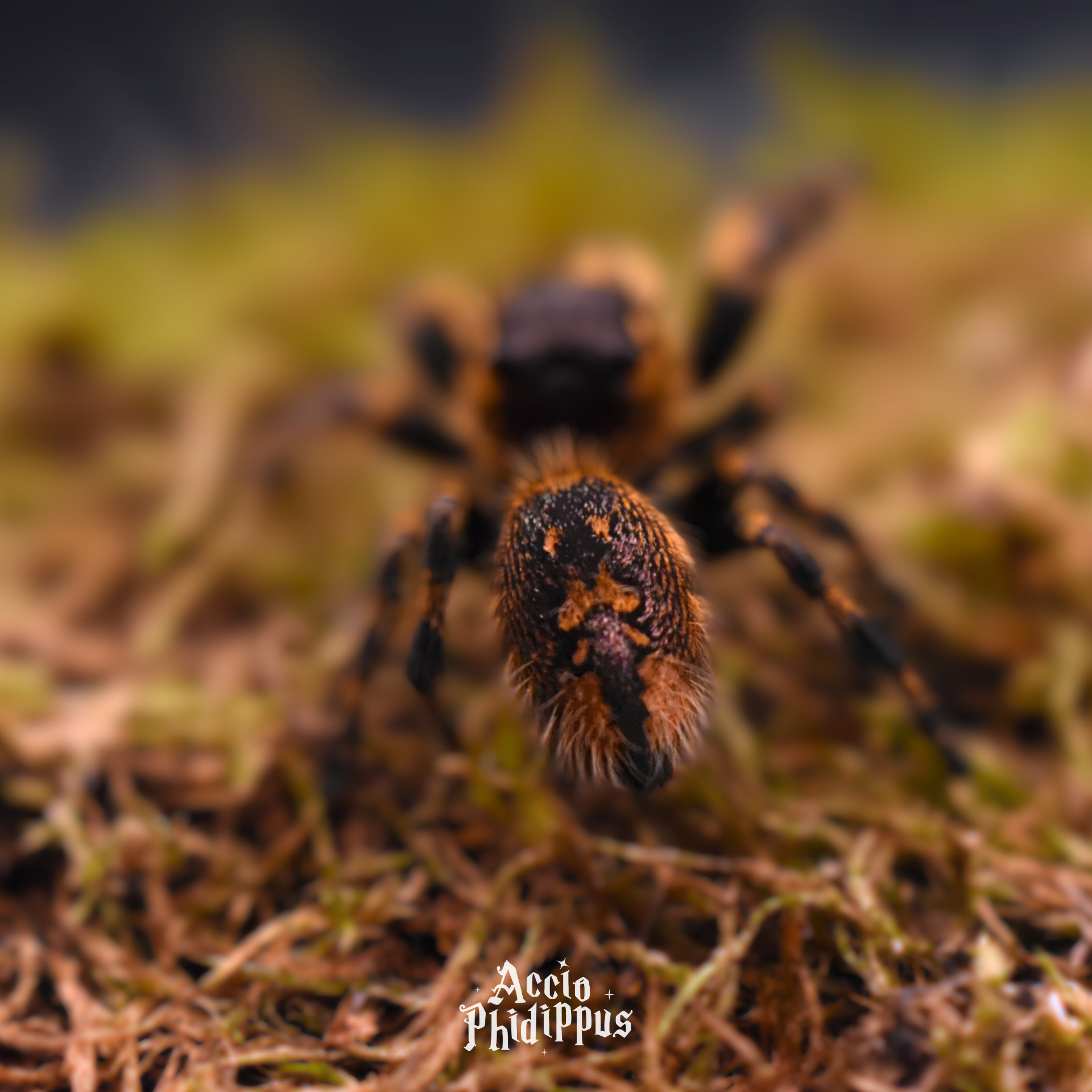 Mâle : Le mâle est généralement plus petit et arborent un corps plus sombre, avec des taches ocres parsemées sur l’abdomen et les pattes. Ils se ressemblent beaucoup entre eux comme chez la regius, mais présentent parfois un peu plus de variations mineures